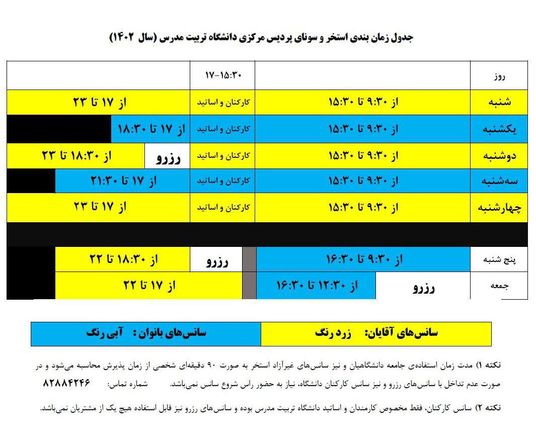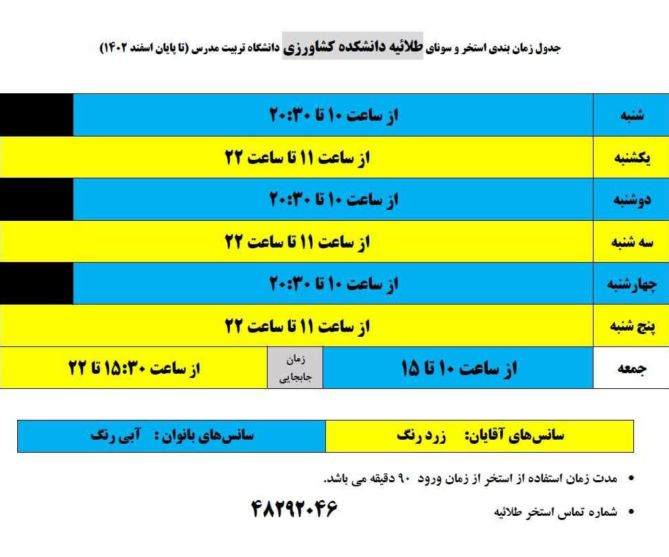 برنامه زمانبندی مجموعه‌های آبی دانشگاه تا پايان سال ١٤٠١